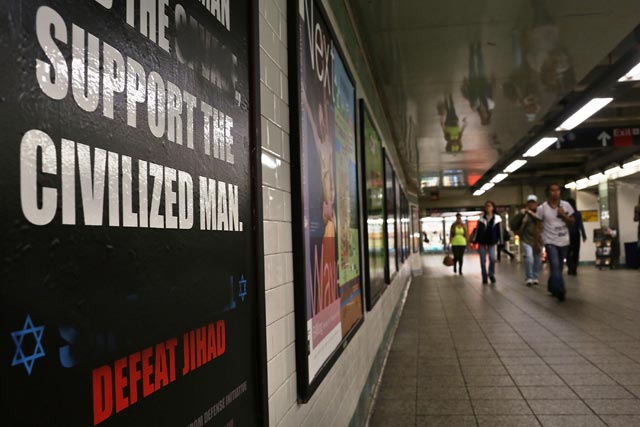 As Jack Jenkins points out at Think Progress, this isn't the first time New York City's subways have been a spectacle of Islamophobia. "In 2012, the group posted ads in Washington, D.C. and NYC that referred to enemies of Israel "savages," and this summer it put posters on 20 buses in the U.S. capital that included an image of Adolf Hitler sitting next to Muslim leader Haj Amin al-Husseini underneath the caption, "Islamic Jew-hatred: It's in the Quran." Read more.