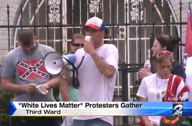 “We came here because the NAACP headquarters is here and that’s one of the most racist—supposedly civil rights—groups in America,” participant Scott Lacy told local station KPRC.