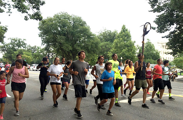 When the runners arrived in D.C. on Friday (Aug. 5), they ran an additional mile from the Supreme Court to the Army Corps Headquarters and protested its July 26 decision to approve the final permits for the 1,172-mile-long pipeline to cross tribal waters. Later that afternoon, the Corps, the Department of Defense and the Advisory Council on Historic Preservation met with the Native youth.