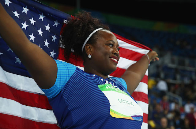 Carter's American record-setting distance of 20.63 meters won her a gold medal in the women's shot put competition.