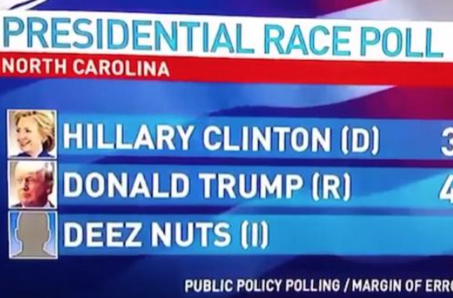 “It started because somebody emailed us under the name Deez Nuts,” says Jim Williams, an issue polling specialist a Public Policy Polling. “He said, ‘I’m Deez Nuts. I’m running. Here’s my filing statement. Would you poll me?’”