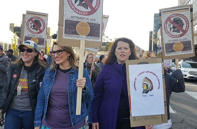 Today I stood with Minnesotans who made their voice and values heard. It’s time we change the name of the Washington NFL team. Because we are people, *not* mascots. #NotYourMascot pic.twitter.com/lHIJM24lmJ
