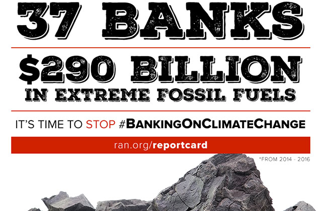 The report, “Banking on Climate Change,” is a joint effort of the Rainforest Action Network, the Sierra Club, BankTrack and Oil Change International.