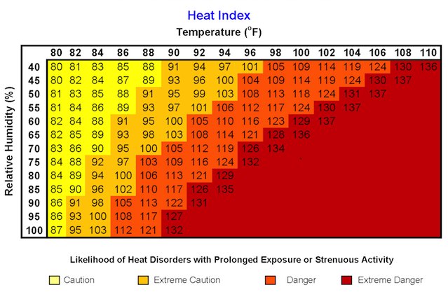 Just how hot does it get? According to temperature logs kept by the Texas Department of Criminal Justice, heat indices in some facilities surpassed 100 degrees by 8:30 in the morning, with temperatures spiking above 110 degrees for a heat index of 149 degrees. Investigations into heat-related deaths at state facilities found that temperatures were into the 90's, even past midnight. These heat levels put people at "extreme danger" of heat disorders, according to the National Weather Service