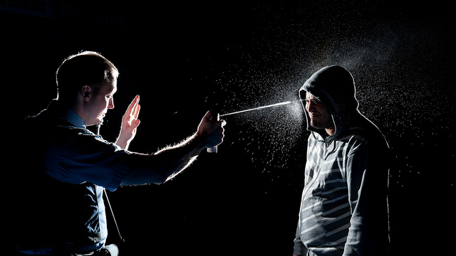 In a trial that began yesterday, eight Birmingham students are suing their local police department after being pepper sprayed by police working at their four high schools. One tenth grade girl, "K.B." according to a 2012 court order, was sprayed when she allegedly could not stop crying, or "calm down," after "a fellow student harassed her with lewd comments because she was pregnant." Other students had committed minor infractions like fighting or were being or had been detained by local police acting as "school resource officers." No criminal charges have been lodged against any of the students, according to plaintiff attorneys with the SPLC which reports: