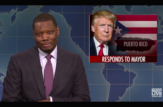 During Saturday night's (September 30) episode, the "Weekend Update" co-anchor compared the president's tweets attacking San Juan mayor Carmen Yulín Cruz and the people of Puerto Rico to his far-less-antagonistic treatment of Hurricane Harvey and Irma survivors in the continental United States: