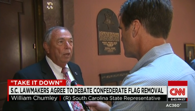 During a CNN interview about his state’s Confederate flag controversy, South Carolina state representative Bill Chumley (R) defended the capitol’s continued use of the flag and said that the victims “waited their turn to be shot.”