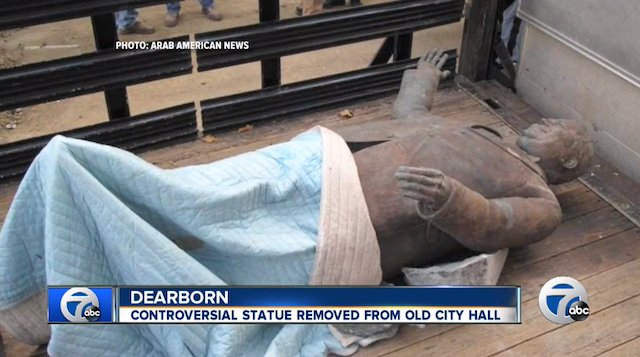 Earlier this week, a 10-foot bronze statue of former Dearborn, Michigan, mayor Orville Hubbard was removed from its perch in front of the old city hall. The statue was the subject of fierce debate this summer in the days after the Confederate flag became a flashpoint in the racially-motivated Charleston massacre. It will be relocated to the Dearborn Historical Museum.