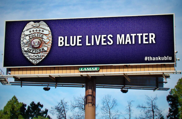 Tactical Magic, a Tennessee-based advertising firm, put up a billboard and some signs in Memphis saying "Blue Lives Matter" with an accompanying hashtag, #thankublu. Trace Hallowel, Tactical Magic's creative director, said that "the message was simply to affirm the humanity of our men and women in uniform" and honor the memory of fallen officers.