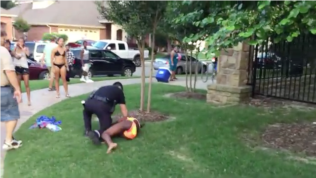 Video emerged Sunday of McKinney, Texas, police officer Eric Casebolt slamming 15-year-old Dajerria Becton to the ground and pinning her there, before pulling his gun on teens who ran over to help her. The police were reportedly called to Craig Ranch—a subdivision of McKinney, which is a part of the Dallas-Ft. Worth Metroplex—following calls from residents and a private security officer about teens using the pool without permission and fighting. Many of the teens were black. Twelve officers in total were sent to the scene. Becton was released to her parents without arrest.