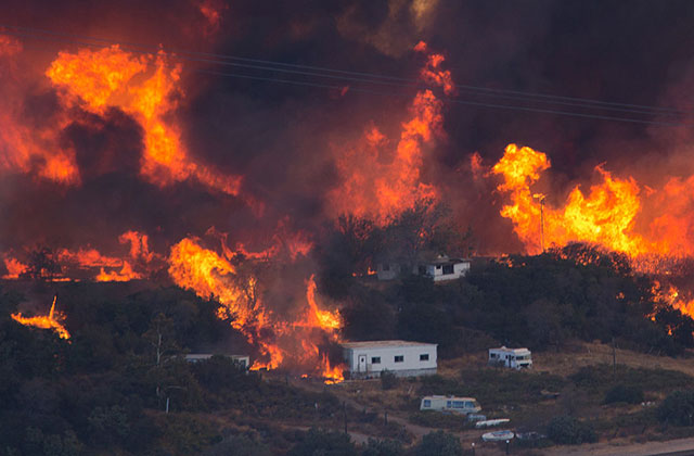The fire began on August 16 north of San Bernardino, leading Gov. Jerry Brown to issue an emergency proclamation for the predominantly Latinx county, which also has a 20 percent poverty rate (the national average is approximately 15 percent). The wildfire—the state's 3,874th this year—is currently 31,689 acres and only 4 percent contained, putting an estimated 34,500 homes at risk. The state does not have a count of how many structures have already been damaged or destroyed.