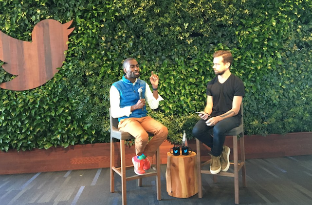 .@Deray and @Jack having a chat at @twitter HQ. Sharing how Twitter was critical in the #BlackLivesMatter movement. pic.twitter.com/TPi8Th9LEP
