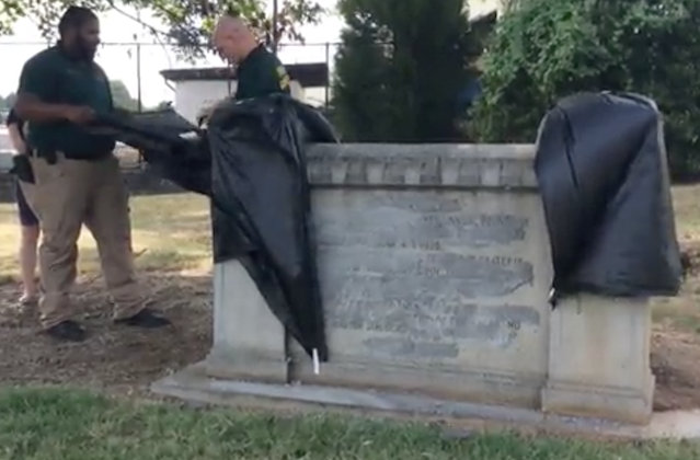 The second monument, which became a point of contention between Mecklenburg County (whose county seat is Charlotte) commissioners and members of the public in the wake of the national conversation about Confederate imagery, was found covered in cement. Specific parts covered include an engraving of the Confederate battle flag and an inscription honoring Confederate soldiers upholding the "Anglo-Saxon civilization of the South.”