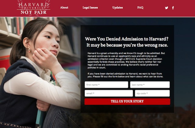 This spring, Blum put out a call for plaintiffs who'd been denied admission to UNC-Chapel Hill, Harvard and the University of Wisconsin. His websites prominently featured Asian faces, though in an interview with Colorlines, Blum denied that he was targeting Asians or using them as a wedge to divide different groups of color in a thorny race issue.