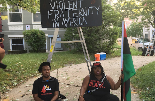 In Washington, D.C. this morning (July 20), members of Black Youth Project 100 (BYP100) and Black Lives Matter-DC (BLM-DC) have assembled outside the legislative office of the national Fraternal Order of Police (FOP). Activists are demanding that officers who are interested in justice stop paying dues to the FOP; they are in hour three of the action.