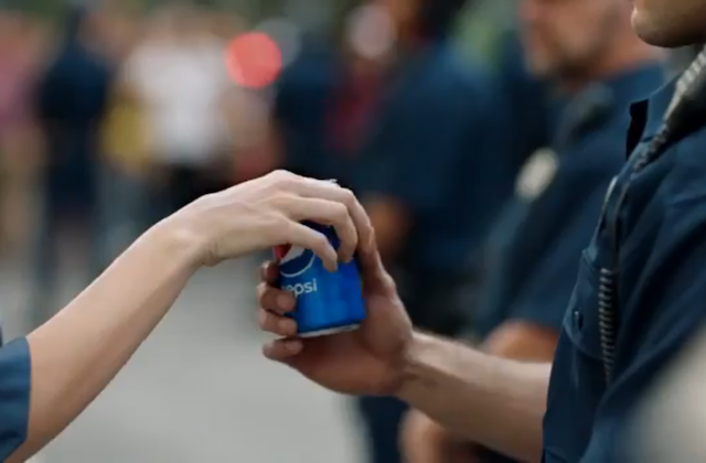 A new Pepsi commercial shows the reality show personality presenting a police officer with a cool drink, opening his eyes to the plight of the oppressed.