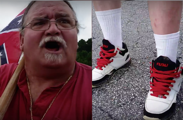 In a piece originally reported by Raw Story that's now become a trending topic on social media, journalist George Chidi (who used to work for Raw Story and is, notably, black) visited a Confederate Flag support rally at Georgia's Stone Mountain Park. There, he talked to a man with a Ku Klux Klan insignia tattoo and hat about his shoes - specifically, his sneakers by FUBU, a brand founded by black entrepreneurs specifically to have a hip hop-inspired apparel line for black consumers ("FUBU" stands for "For Us By Us"). The exchange is hilarious, as the following quote from Raw Story attests: