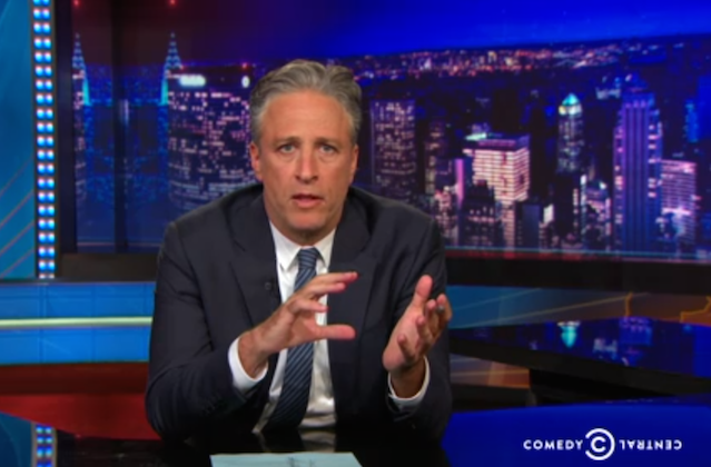 Similar to his opening monologues after 9/11, the 2011 Tuscon shooting, and the murder of Eric Garner, Jon Stewart opened last night's episode of The Daily Show (whose guest, fittingly, was human rights activist and shooting survivor Malala Yousafzai) with none of his regular jokes and instead opted for solemnity and exasperation at the massacre of nine civilians in Charleston on Wednesday.