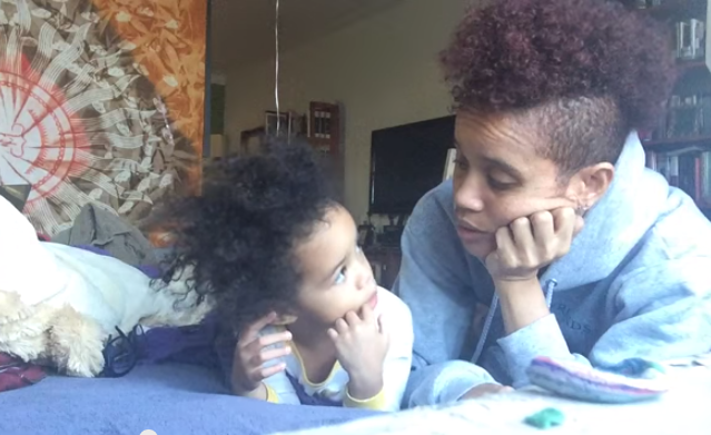 The "Living Room Protest" videos Chin has posted since December feature mother and daughter reciting chants such as "No justice, no peace!" and "I can't breathe!" But the third installment, pasted below, gets into a more specific topic facing Zuri and young children generally--getting consent before touching or picking up a child. In the sweet and somewhat silly video, Zuri and Staceyann lay out the basics: "No means no" and always get permission before touching, even if it's a child."