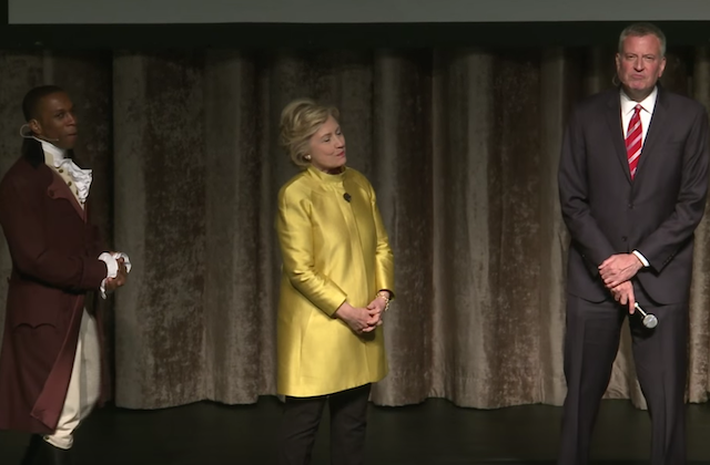 They made the joke at the Inner Circle Dinner, a roast that is hosted annually by a group of New York City journalists. This year's dinner was held on Saturday (April 9), and in service of its "Shamilton" theme, de Blasio and Clinton took to the stage alongside "Hamilton" actor Leslie Odom Jr.