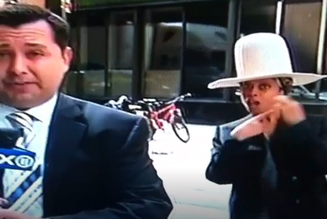 Pix 11 reporter Mario Diaz got quite a surprise on Friday when he was out reporting on actor Shia LeBeof's recent arrest. Erykah Badu photobombed Diaz with a series of silly antics before leaning in to kiss him and being pushed away.