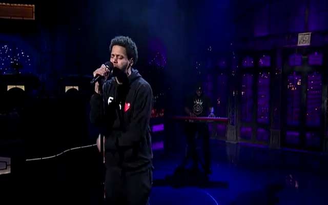 J. Cole, fresh off of the release of his third album "2014 Forest Hills Drive," paid a visit to "The Late Show With David Letterman" last night. He treated the audience to a live performance of his song "Be Free," the track he recorded and dedicated to Mike Brown. The song doesn't appear on the new album, but it was timely nonetheless given all the recent protests for Brown and Eric Garner. Watch.