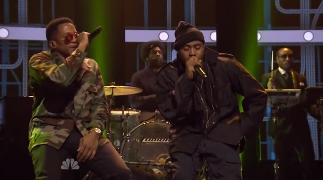 To celebrate that milestone, Nas joined Q-Tip and The Roots on "The Tonight Show With Jimmy Fallon" on Monday to perform some of his hit singles from the album. Here's "The World Is Yours."