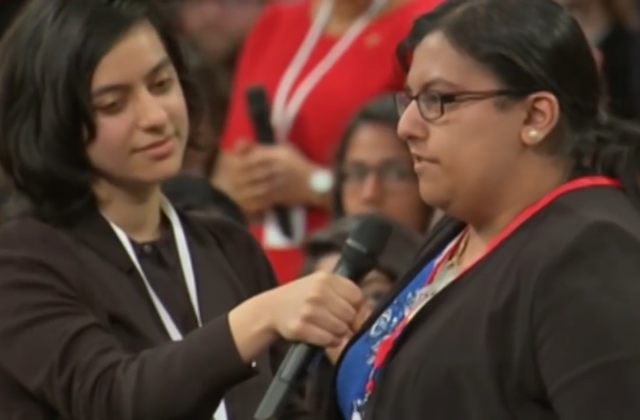 Munir paused, then apologized for getting emotional. As the crowd erupted into cheers, President Obama encouraged Munir to continue. Munir spoke about activism surrounding LGBTQ people both in the U.S. and U.K, then said: “Perhaps you could elucidate as to what you can do to go beyond what has been accepted as the LGBTQ rights movement, including people who fit outside the social norms.”