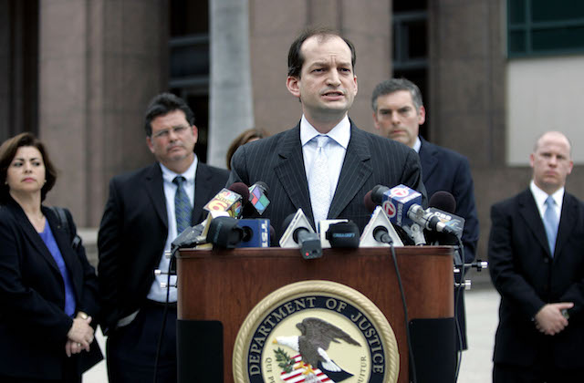 The Miami Herald reports that the Cuban-American Acosta, who goes by "Alex," successfully passed Senate vetting three times before to serve out presidential appointments. He earned his Juris Doctor degree from Harvard Law School and was a National Labor Relations Board member from 2002 to 2003. He went on to become assistant attorney general of the Justice Department's Civil Rights Division. He also served as U.S. attorney for the southern district of Florida from 2005 to 2009. The Herald says Acosta prosecuted several drug trafficking and fraud cases as a U.S. attorney, including one where he indicted a fellow Republican, lobbyist Jack Abramoff, for fraud conspiracy. He clerked for Supreme Court Justice Samuel Alito in the mid-1990s back when Alito was a U.S. Court of Appeals judge, and currently serves as the dean at Florida International University Law.