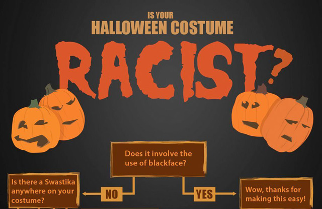 Are you worried that your Halloween costume may be a little bit racist? Don't be this person. Or these folks. The good folks at College Humor found this handy little flowchart so you don't make an asshole out of yourself this year. And, if you're wondering, there are ways to dress up as a person from a different race and not be a jerk.