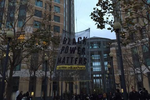 Livestream: Protestors Hang Huge 'Black Power Matters' Banner in Oakland