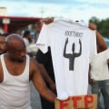 Since protestors are blocking the street, our bus driver makes a risky U-turn. My group rides to the community barbecue, which is taking place in a Ferguson parking lot. This is where members of Lost Voices, a black teen group that has formed in the days since Brown was killed, have been sleeping for weeks. They started out on cardboard boxes; people have since donated tents. On the mic hooked up to a sound truck, one boy announces that he’s lost both of his jobs because he was here instead of at work. Another tells the small group of attendees that they plan to stay here until Wilson is arrested. (The next day Lost Voices members find a noose in their camp.) With constant reminders to “turn up,” we dance in the parking lot. It’s a temporary relief from the tension of the march.