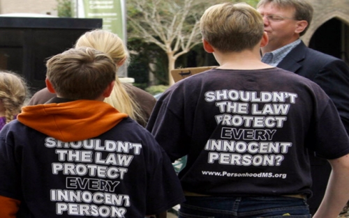 But here comes Personhood Mississippi, using that history and legacy to assert their own Christianity-only, unconstitutional idea of “equal rights” for fetuses of any “size, location or developmental stage”: