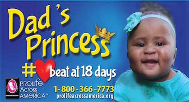 Based on the designs Prolife Across America has in an on-line archive, its billboards feature infants of many different races. Nearly all of them assert that the human heartbeat begins just 18 days after conception.