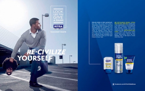 Thank you for caring enough to give us your feedback about the recent 'Re-civilized' NIVEA FOR MEN ad. This ad was inappropriate and offensive. It was never out intention to offend anyone, and for this we are deeply sorry. This ad will never be used again. Diversity and equal opportunity are crucial values of our company.