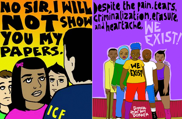 As project manager at the national arts organization CultureStrike, Salgado’s posters depict key people and moments of the migrant rights movement. His mission “to uplift the work of other undocumented, trans, queer and artists of color” is palpable.