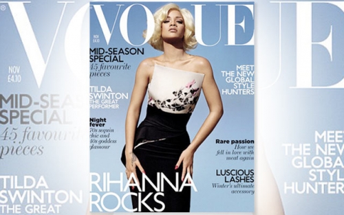 The blonde wig may be throwing us off, but Rihanna is on the cover of British Vogue’s November 2011 issue and she’s looking much lighter.