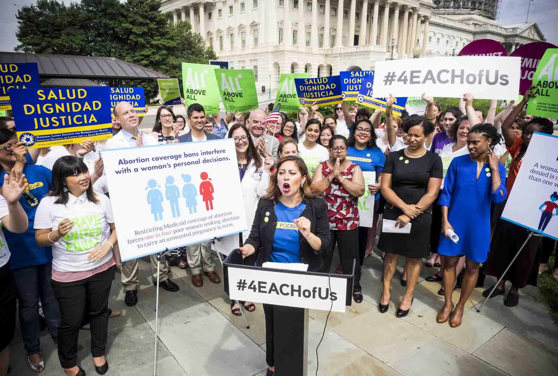 In early July, along with a coalition of women’s health, rights and justice groups, 72 Congressional Democrats introduced a bill into the House of Representatives that could produce a major shift in how women pay for their abortions. The EACH Woman Act is aimed a repealing the Hyde Amendment, a 1976 policy that prevents women with government-funded health insurance from using their coverage to pay for abortions. Hyde impacts women who are on Medicaid and Medicare, who use Indian Health Service insurance, are in the military, or who work for the federal government. Hyde forces millions of women, either low-income, disabled, Native, or employed by the government, to have to pay out of pocket for abortion procedures that can range anywhere from $300 to $3,000, depending on the state, clinic and medical needs. The EACH legislation also aims to make sure women with private insurance also have abortion coverage.