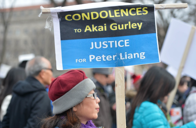 Thousands of protestors gathered in what JusticeForPeterLiang.com says totaled 30+ cities—including New York, Philadelphia and Las Vegas—to protest Liang’s conviction. From the signs to the chants, the prevailing sentiment among the largely Asian-American crowd was that the Chinese-American officer was scapegoated because of his race. Per The New York Times: