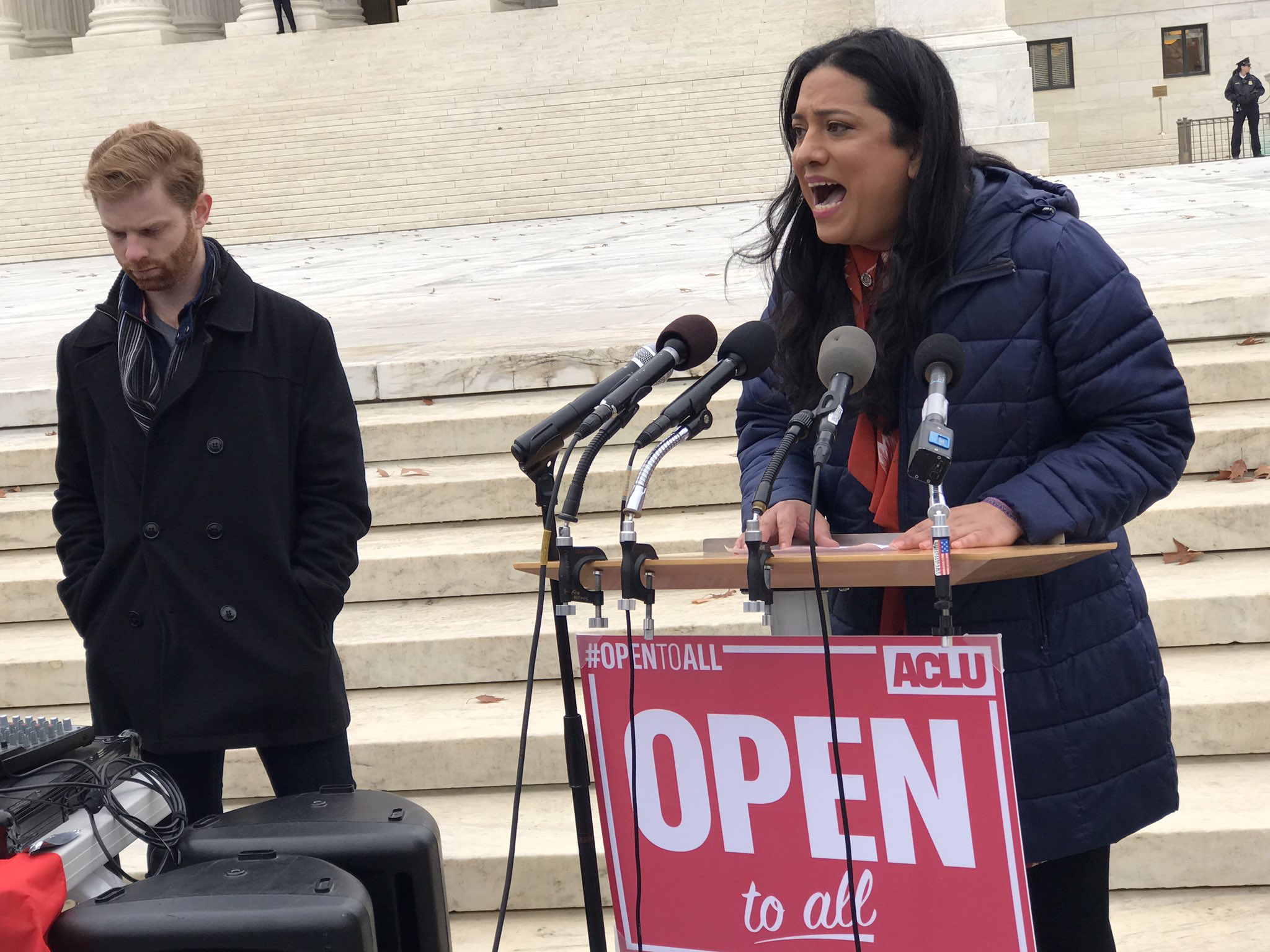 The Supreme Court is hearing oral arguments today, and pro-LGBTQ advocates rallied on the steps of the Court this morning to express their opposition to discrimination. The Court won't issue a decision on the case until 2018.